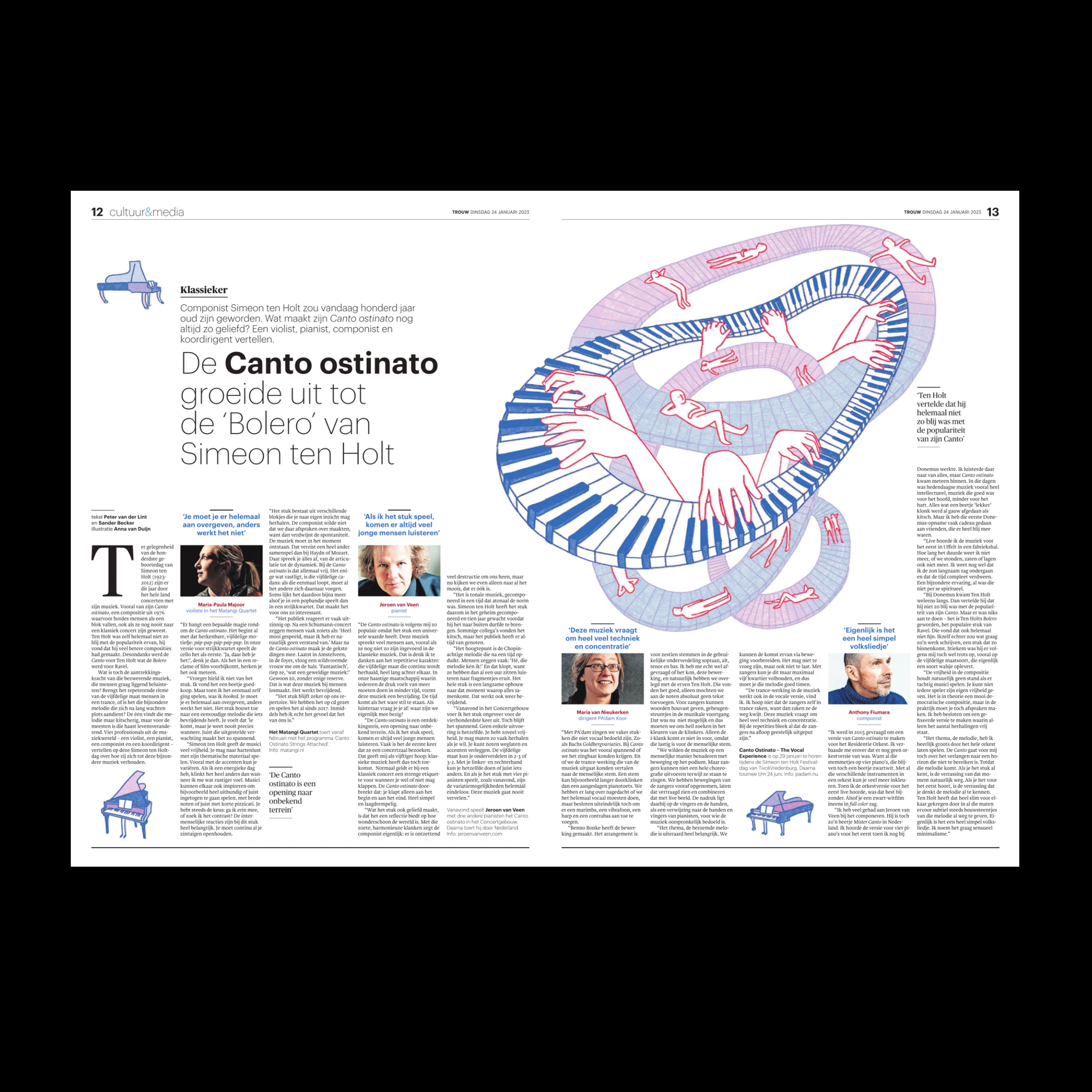 Illustrations for Trouw. The ‘Canto ostinato’ unintentionally grew into the ‘Bolero’ of Simeon ten Holt.